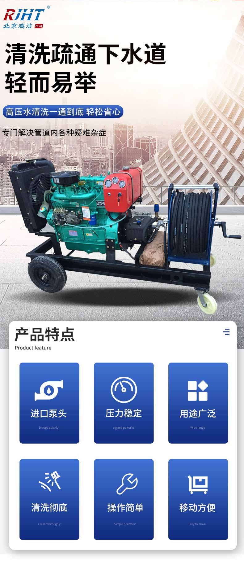 800型 41馬力柴油機 大型管道疏通機- ?型號:RJHT-800